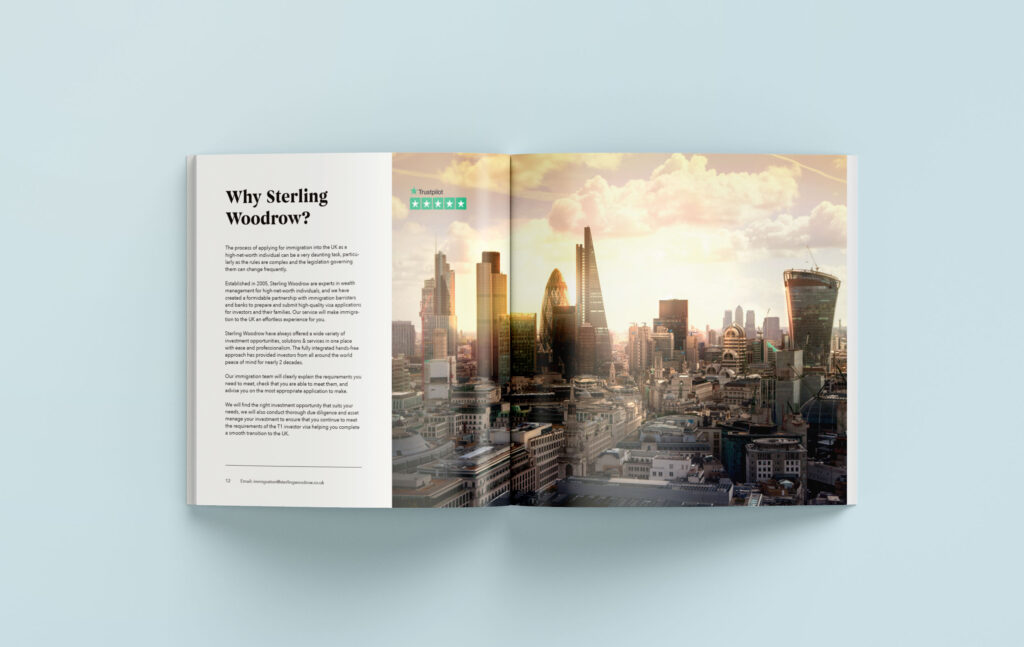 Sterling Woodrow needed a premium brochure to promote their Golden Visa investment opportunities, targeted at high-net-worth individuals looking to obtain residency through strategic investment.